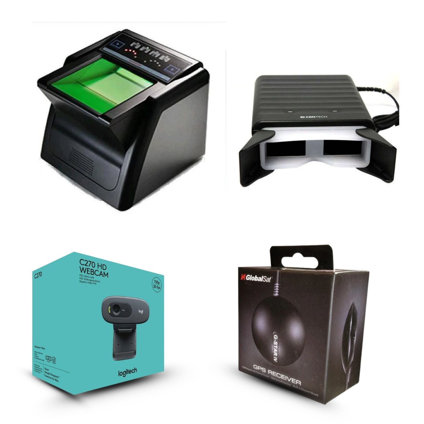 Product including { Suprema 4g g10 I fingerprint scanner , Delta CMItech iris scanner , logitech web camera and G-star GPS}